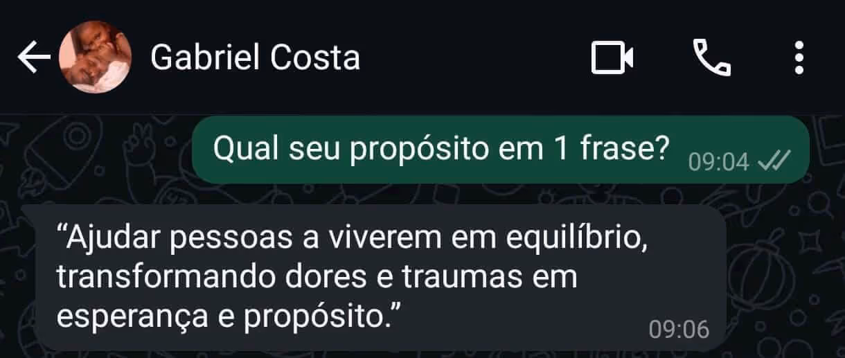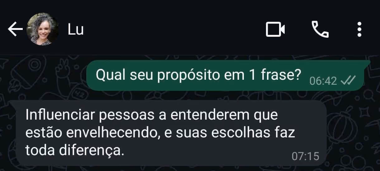 ✓ Definição do seu propósito em 1 frase.